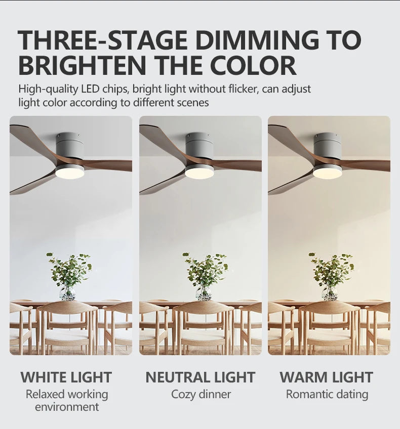 - 6 Fan Speeds - Forward and Reverse Fan Rotation - Dimming Color Intensities - 3000k - 6000k Brightness - Durable ABS Blades - Silent Energy Saving Silicon Copper Motor - Uniform Acrylic Lampshade - Audible Remote - Mounting hardware Included - Energy Saving - Easy Installation |